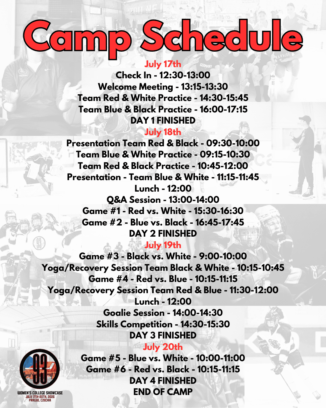 Please note that 93HS operates a strict no-refund policy for all camp registrations. In the event that the camp is cancelled by 93HS, full refunds will be issued to all registered participants.